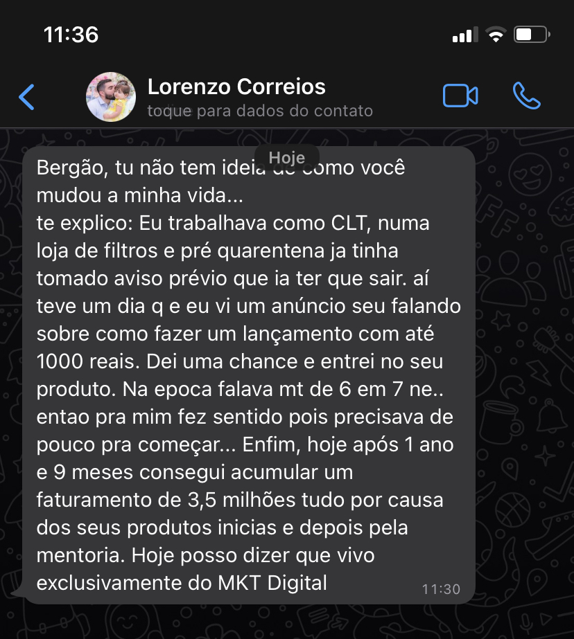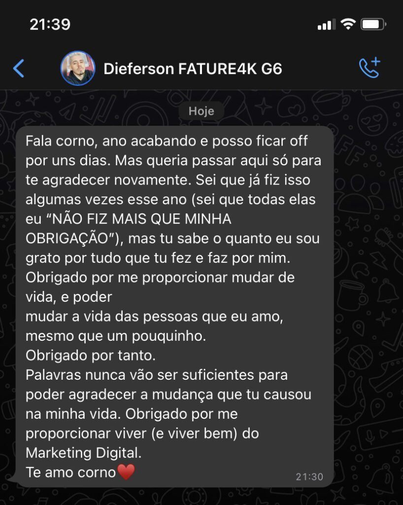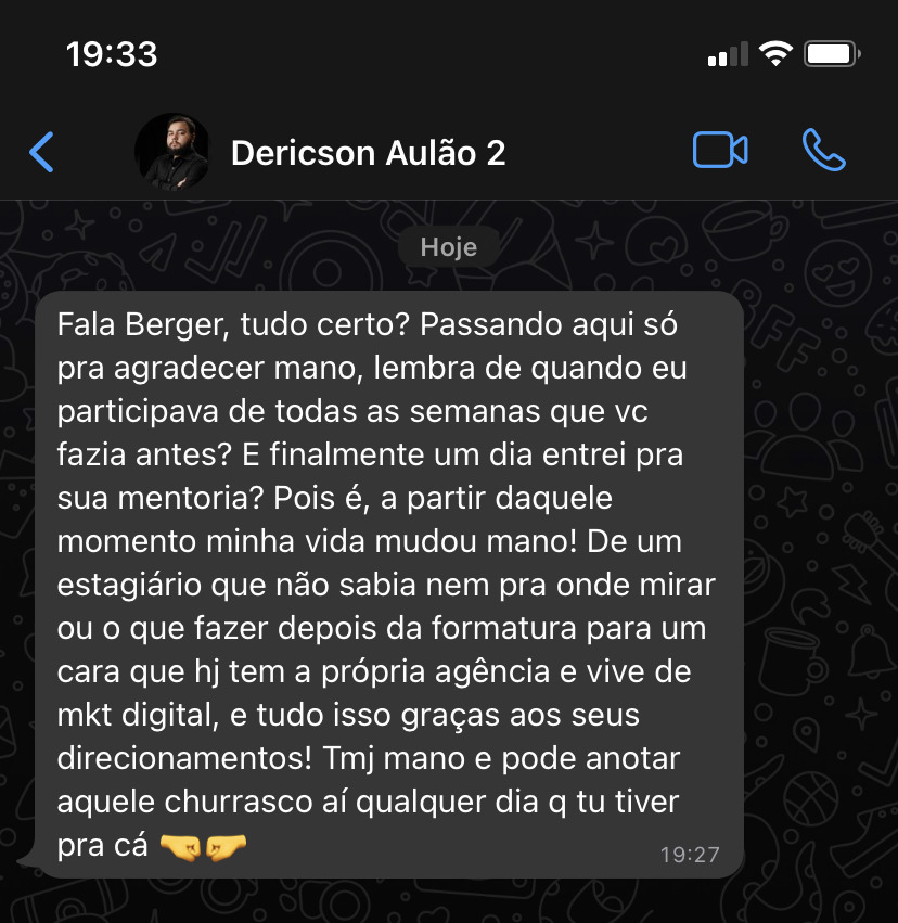 Após oito dias da confirmação do pagamento, liberamos o grupo do Whatsapp, os bônus de todas as aulas restantes.