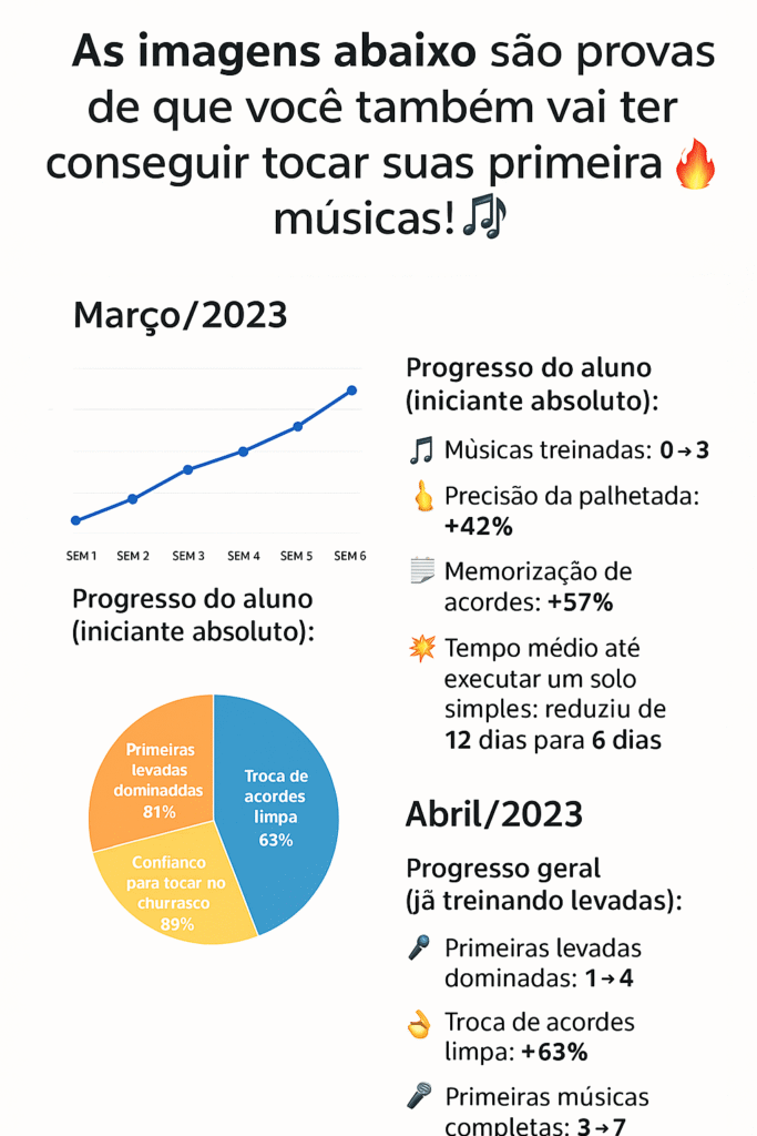 se você seguir o passo a passo, fizer os exercícios e revisitar as aulas, você vai tocar sua primeira música.